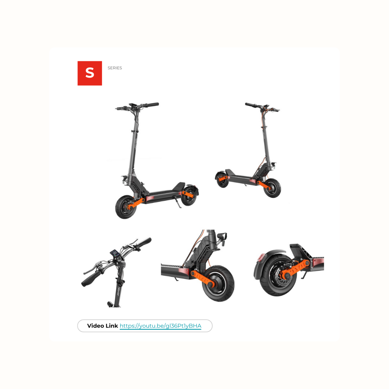 Diseñamos presentaciones complementarias para cada scooter, manteniendo consistencia y estilo.